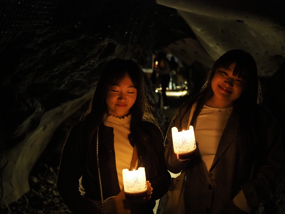 暗い洞窟の中ではロウソクの無料レンタルもあり、雰囲気もさらにアップ!